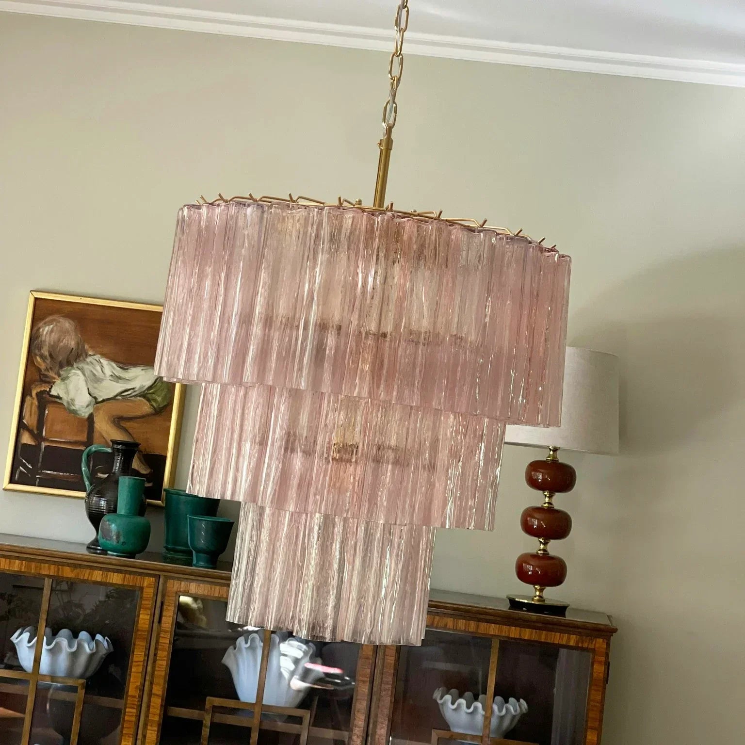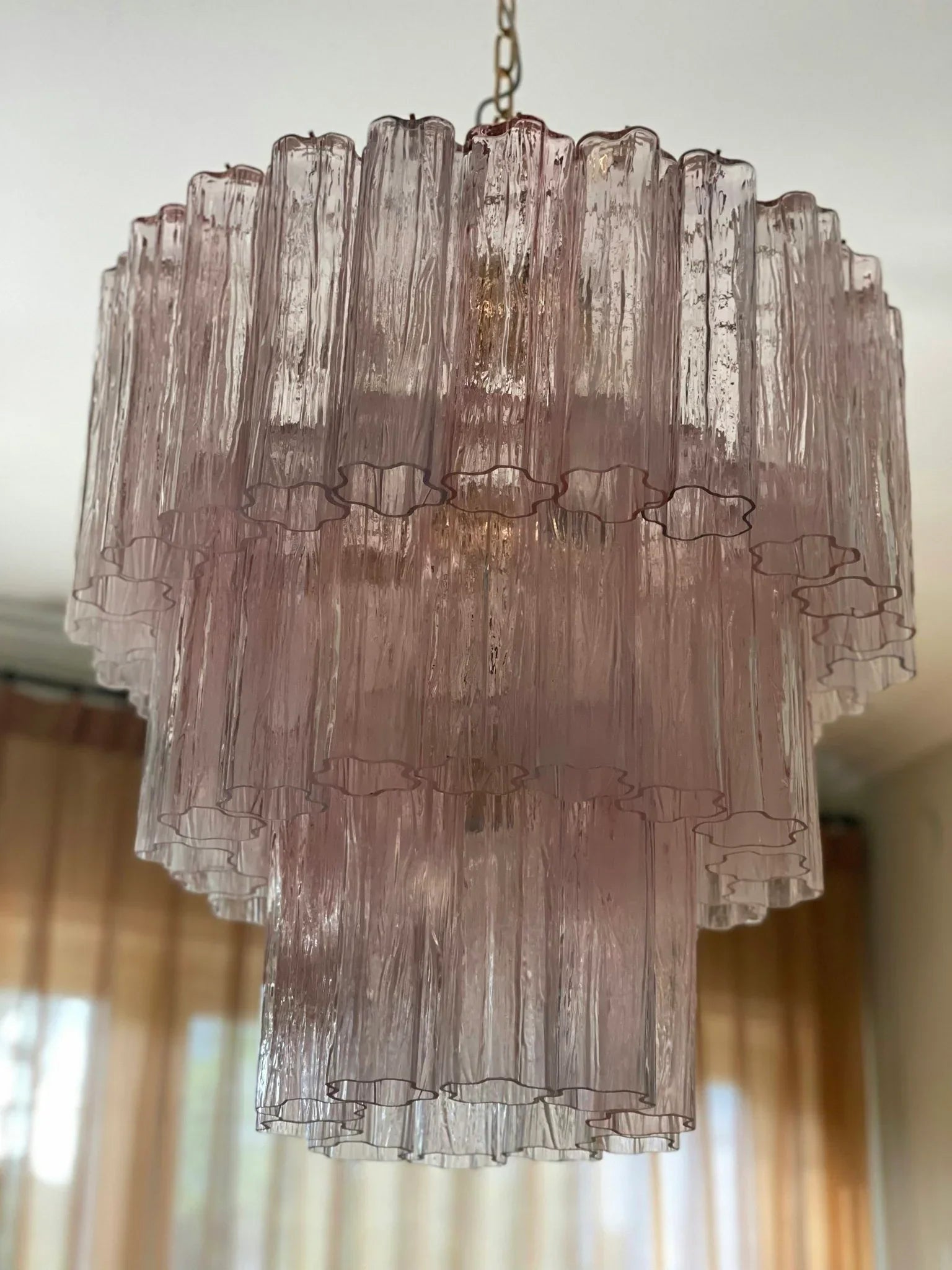 Murano Pink Glass Tube Chandelier