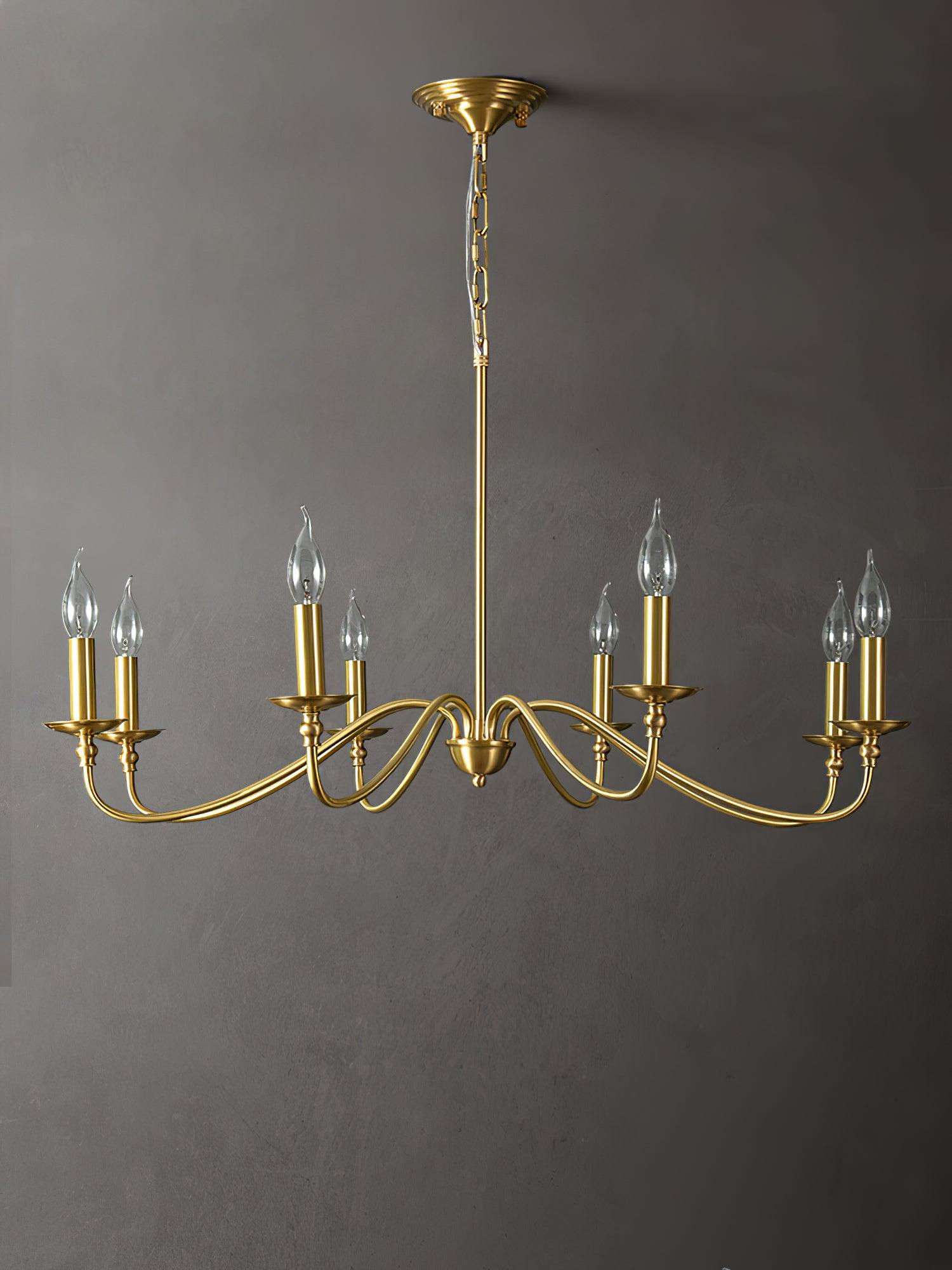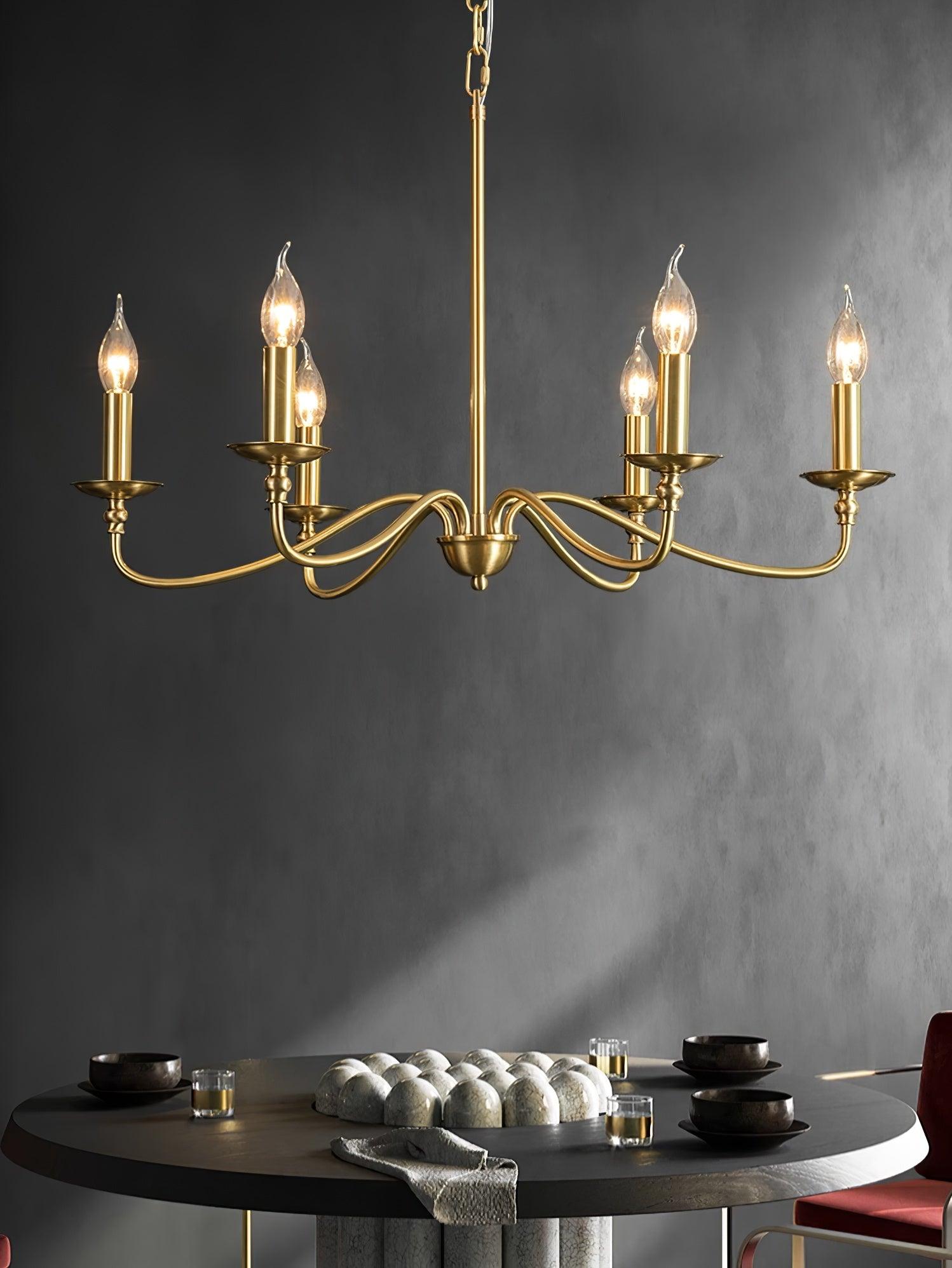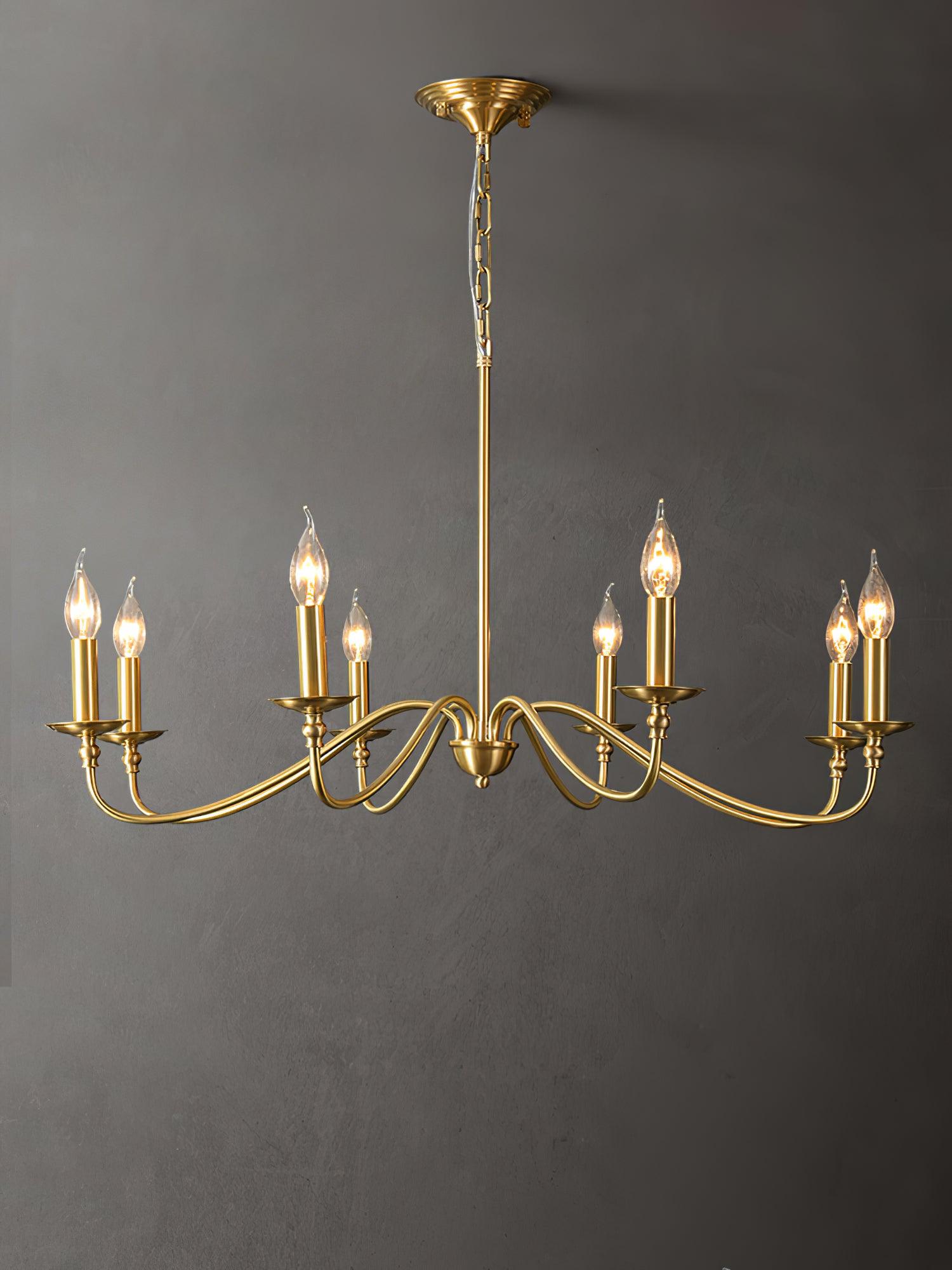 This modern farmhouse lightning featuring classic curved arms with a rich hand brass finish. Hand forged brass construction makes this candle chandelier durable while keep charm and add much farmhouse fair. The modern brass chandelier combines timeless style and contemporary silhouette to reveal personality and identity to your living room, kitchen island, bedroom, foyer, hall, staircase, loft, and dining room.