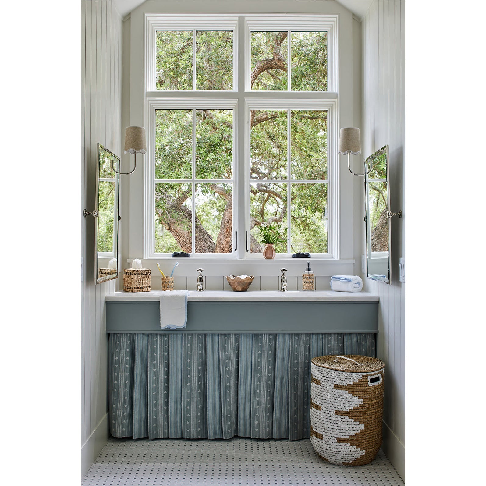 Bring the essence of a summer escape to any room with this wall lamp. Smooth curves and a polished design make this sconce an unexpected classic, while the woven shade and scalloped linen trim add an element of serenity to your retreat.