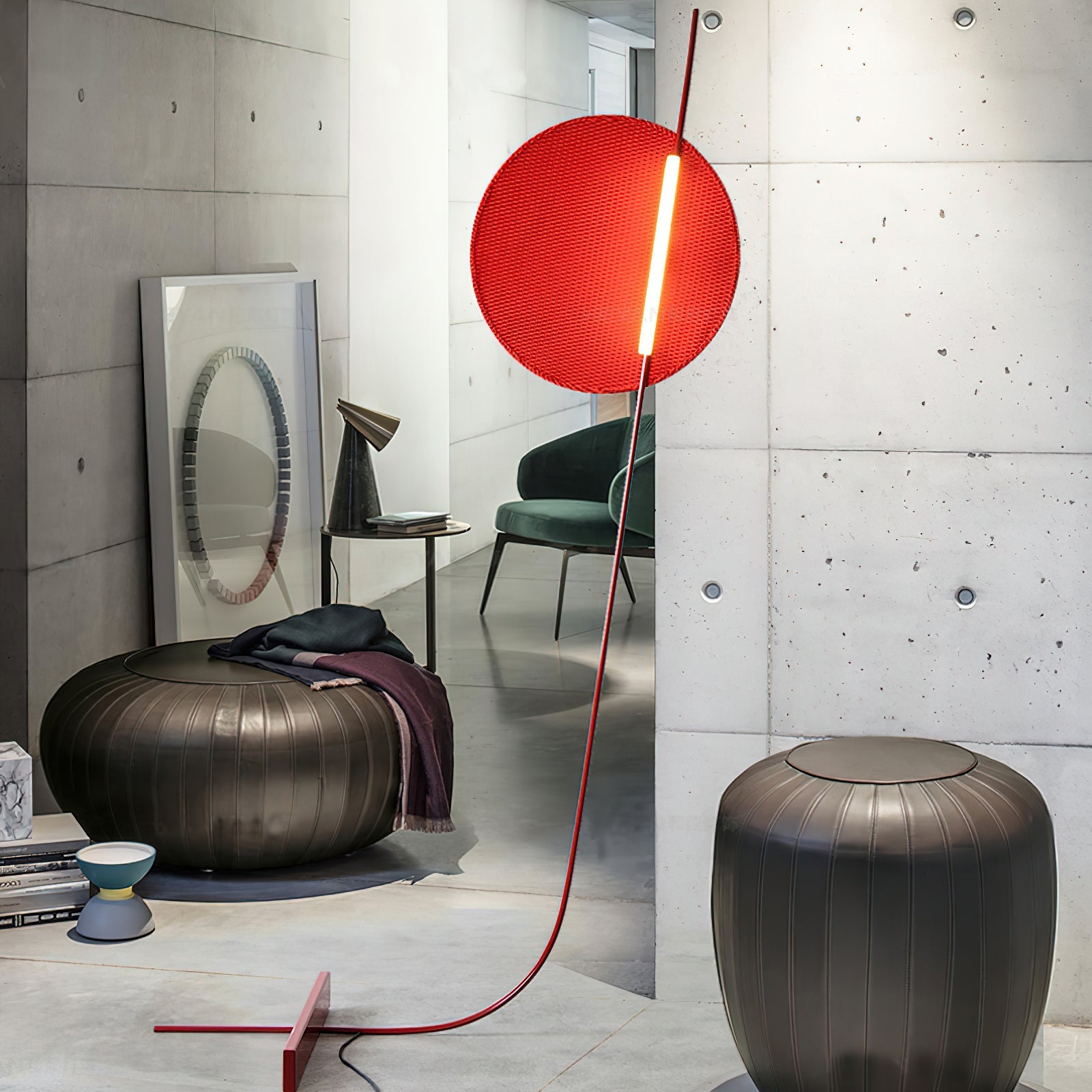 This series of oversized floor lamps features unique diffusers that form an installation inspired by the beauty of movement. Reflection, light, and shadow are employed to enhance the atmosphere within any space.